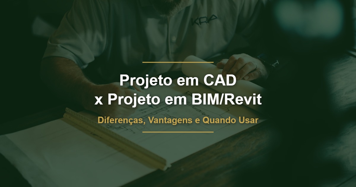 - Dimensão do projeto: CAD trabalha em 2D (plantas e cortes separados); BIM trabalha em 3D com todas as vistas integradas ao mesmo modelo